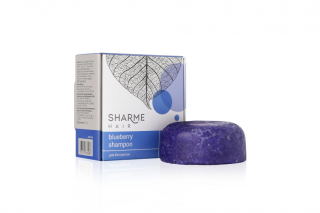 Sharme Hair Blueberry — натуральный твердый шампунь мягко очищает волосы и кожу головы, восстанавливает природный цвет, блеск, мягкость и шелковистость светлых волос, способствует их укреплению и оздоровлению по всей длине. Шампунь специально разработан для максимально бережного очищения и ухода за светлыми и осветленными волосами.